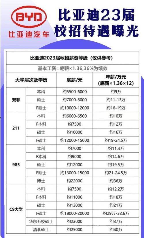 首先,咱们得聊聊比亚迪这个品牌。作为我国新能源汽车行业的领军企业,比亚迪可是响当当的名字。而这次爆料的薪资,更是让人对这家公司刮目相看。